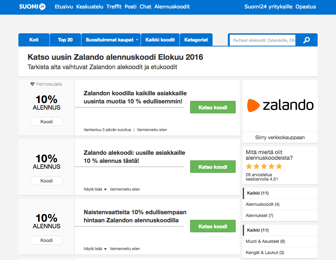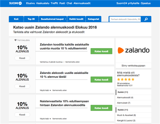 En af de ting jeg bruger mest tid på i min dag er at se hvordan nogle af vores store retailer pages ser ud for en bruger for at sikre, at vores konvertering altid er i top. En af disse retailer pages er på vores samarbejdspartner i Finland denne side, som omhandler finske rabatkoder til Zalando