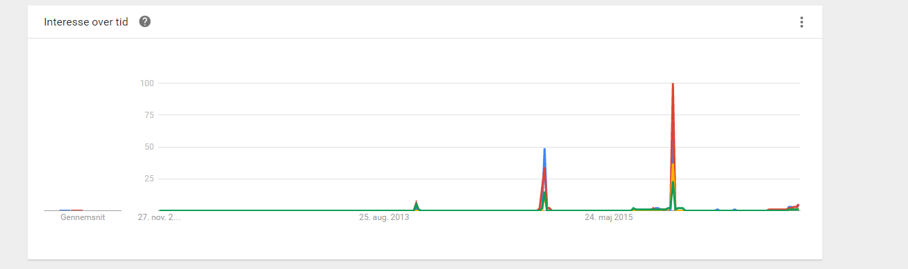 For at give jer et overblik over Black Fridays popularitet, kan vi starte med en simpel google trends søgning, der som de fleste ved, viser interessen over for et givent emne over tid. Her søgt på ” Black Friday” i Danmark.