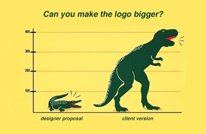 Klienten synes måske, at deres superfine logo da helt bestemt må være det allervigtigste, og derfor skal være MEGET større.