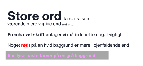 Alting kan jo ikke have den same “vægt” – så vil designet fremstå rodet og uden struktur.
