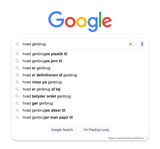 Start med at undersøge, hvilke spørgsmål der lander hos Google i relation til det emne, du skal skrive om. Vi spørger efterhånden Google om alt. Stort og småt. Så det er et godt sted at starte, hvis du vil vide, hvilke spørgsmål du skal svare på, når du skriver tekster til nettet. Det gælder uanset om du skal skrive korte produkttekster eller lange artikler.
