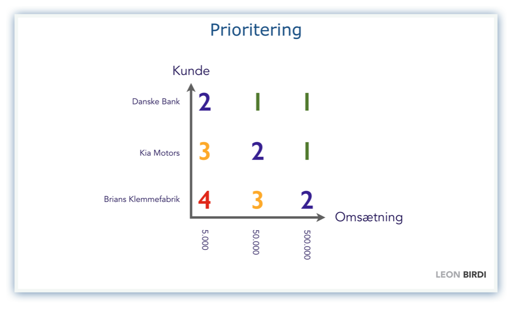 1. Når der kommer indgående sager fra "Brians Klemmefabrik" tager de tid fra "Danske Bank" som måske kan lægge flere ordrer hos dig. Det betyder, at reaktion på telefon og mails kan stjæle ressourcer fra kunder med større potentiale.