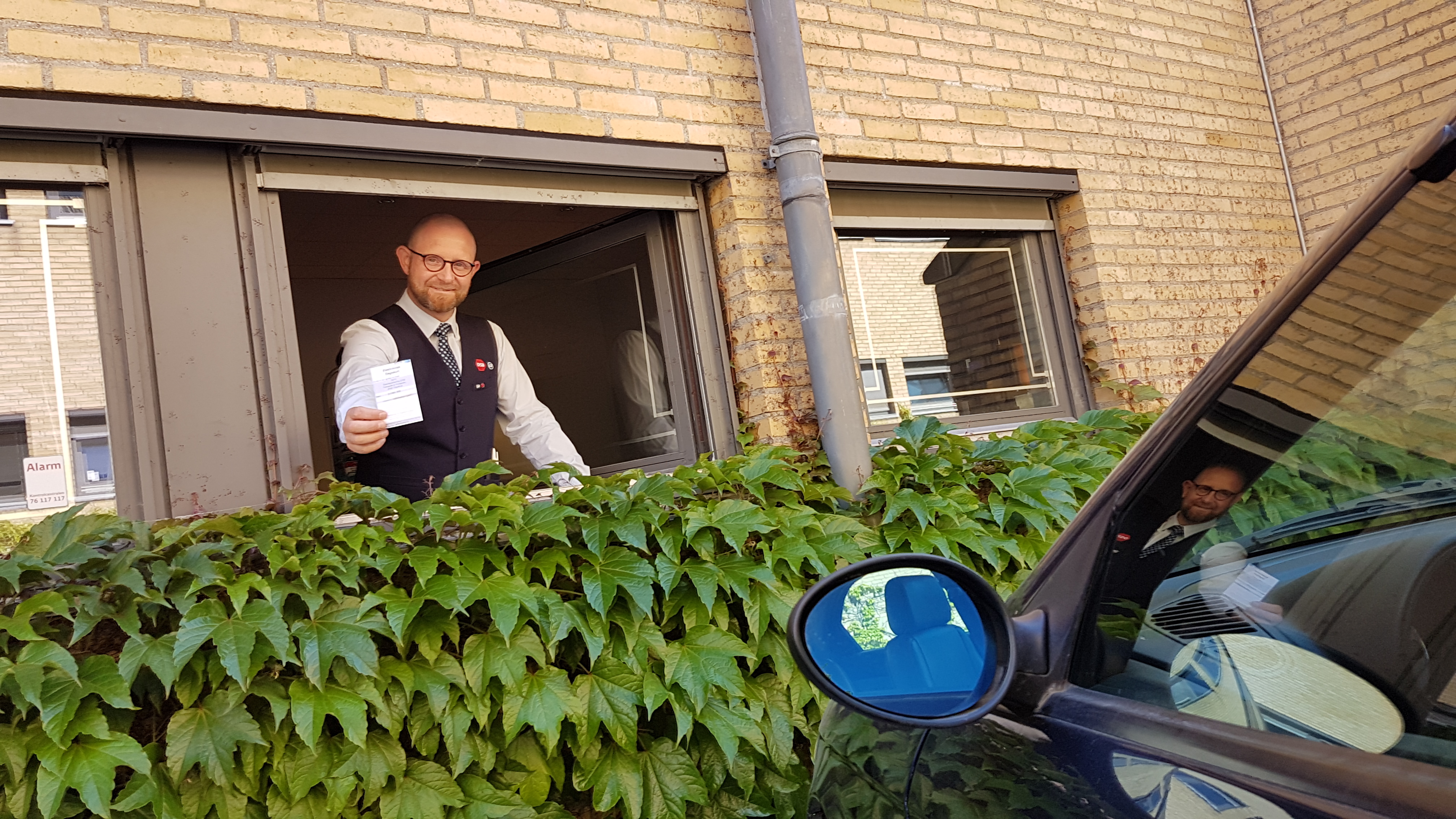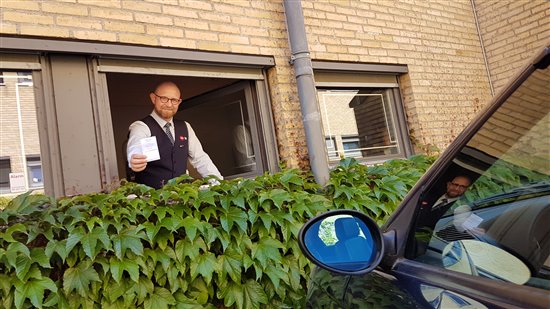 Da jeg steg ud af bilen fornemmede jeg at et vindue gik op. Jeg kiggede og opdagede en smilende herre i DSB-uniform. Han sagde: "God morgen - her er din parkeringstilladelse..."