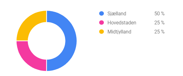 De nuværende data ser dog lidt anderledes ud - Midtjylland er stadig repræsenteret, men Sjælland og hovedstaden er kommet godt med. Det betyder, at Region Sjælland nu står for hele 50% af søgningerne, mens region Hovedstaden og Midtjylland deler de sidste 50%.