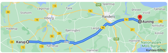 Hvis vi bliver ved region Midtjylland, viser det sig, at disse søgninger er rykket godt 84,7 km. vest på, til Karup - en by der faktisk har endnu færre indbyggere end Auning.