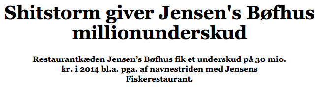 Jensen’s Bøfhus oplevede også en markant nedgang i omsætningen, efter deres kiksede håndtering af navnestriden med Jensens Fiskerestaurant. Efterfølgende har der været et par andre sager, som bestemt heller ikke har været gode for dem.