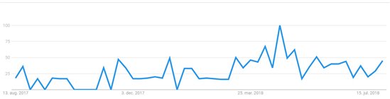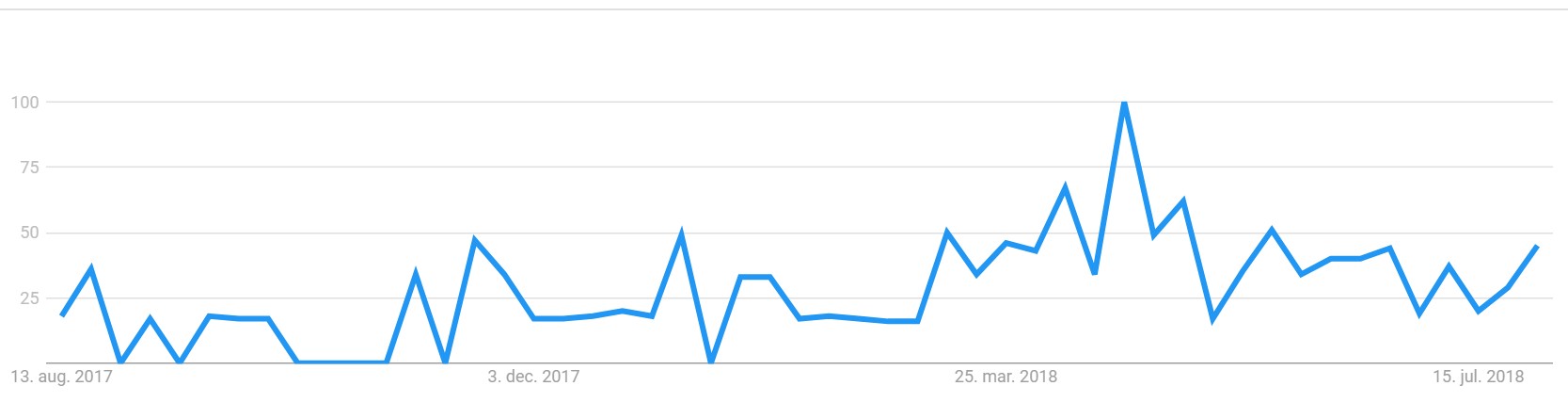 Hvis vi f.eks. ser på et keyword som ”legetøj”, så kan det nok ikke undre mange, at der generelt søges mere på det i månederne op til jul. Mange gange flere!