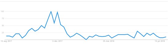 Nedenfor kan du se en graf fra Google Trends, der viser hvordan søgningerne fordeler sig i løbet af året på netop ”legetøj”.