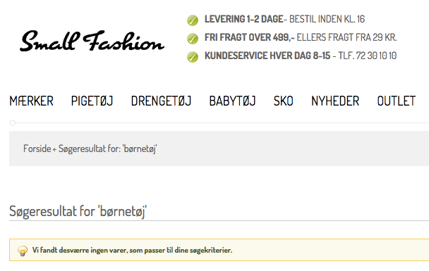 I det konkrete tilfælde havde de logisk nok valgt at have en kategori med pigetøj og en med drengetøj. De havde så bare ikke lige været opmærksomme på, hvor mange der faktisk søger på fællesbetegnelsen: Børnetøj.