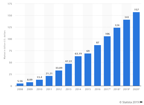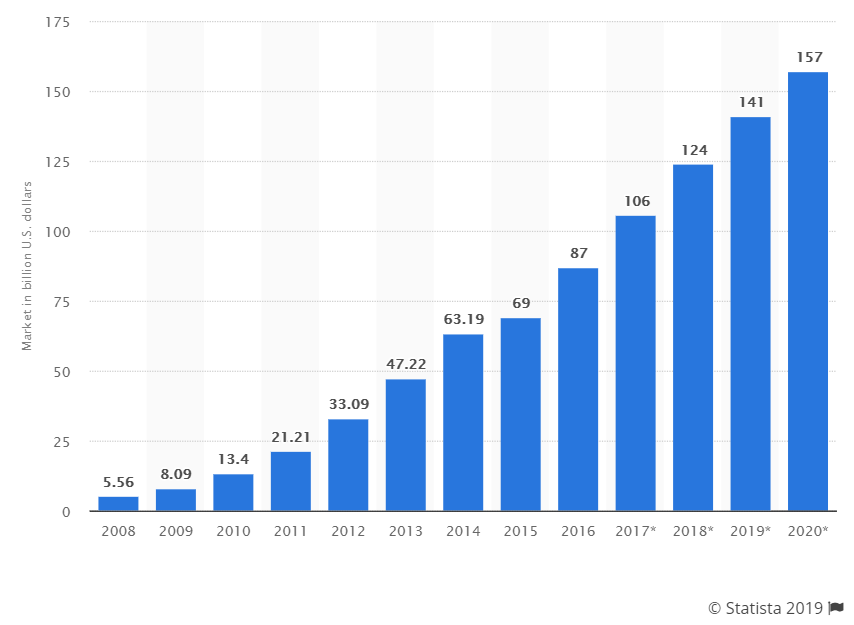 SaaS-markedet som helhed forventes at nå en omsætning på $157 milliarder i 2020. Det er mere end en fordobling siden 2014!