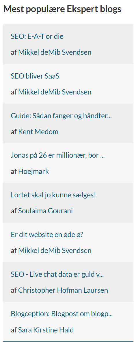 Her kan du f.eks. se hvordan det ser ud i ekspertblog oversigten. Nogle af overskrifterne giver ingen mening når de ikke vises i sin helhed.
