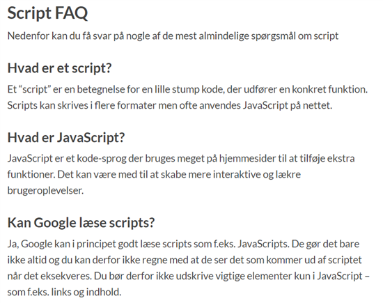 Som du kan se, ligger vi blandt andet nummer ét på ”script”. Det ser sådan her ud, inden jeg har tilføjet FAQ-objektet.