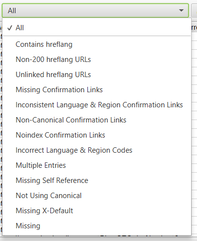 Du kan f.eks. se, om der er sider, der mangler konfirmation (handshaking), om der er sider, der ikke svarer med 200 OK, om sider er udelukket fra indeksering, og om der mangler selv-reference eller X-Default.