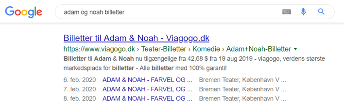 Nedenfor kan du se et eksempel på et website, der sælger billetter til Adam og Noah.