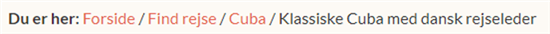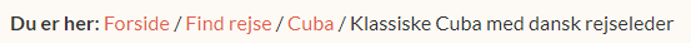 Nedenfor kan du se et eksempel på bread crumb navigation på Svanerejser.dk