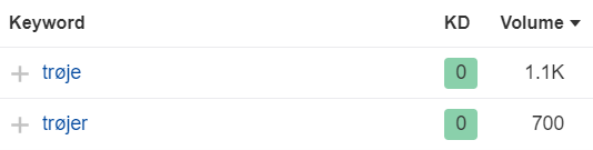 Pointen er, at du ikke uden at undersøge det, kan være sikker på om din målgruppe bruger ental- eller flertalsform af dine keywords. På trods af, at jeg har arbejdet med SEO – og keyword research, i over 20 år gætter jeg stadig ofte forkert. Så undersøg det – ord for ord!
