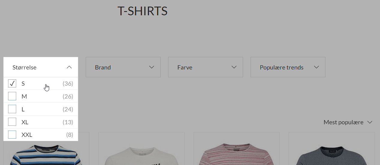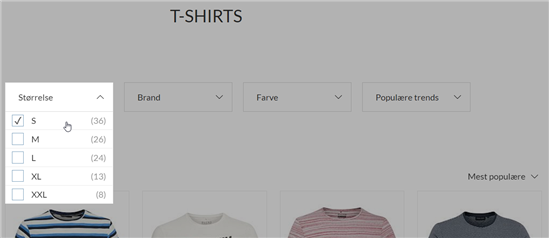Læg specielt mærke til den sidste del ”?size=S”. Det fortæller systemet, at det kun er de mindste størrelser, der skal vises. Smart nok.