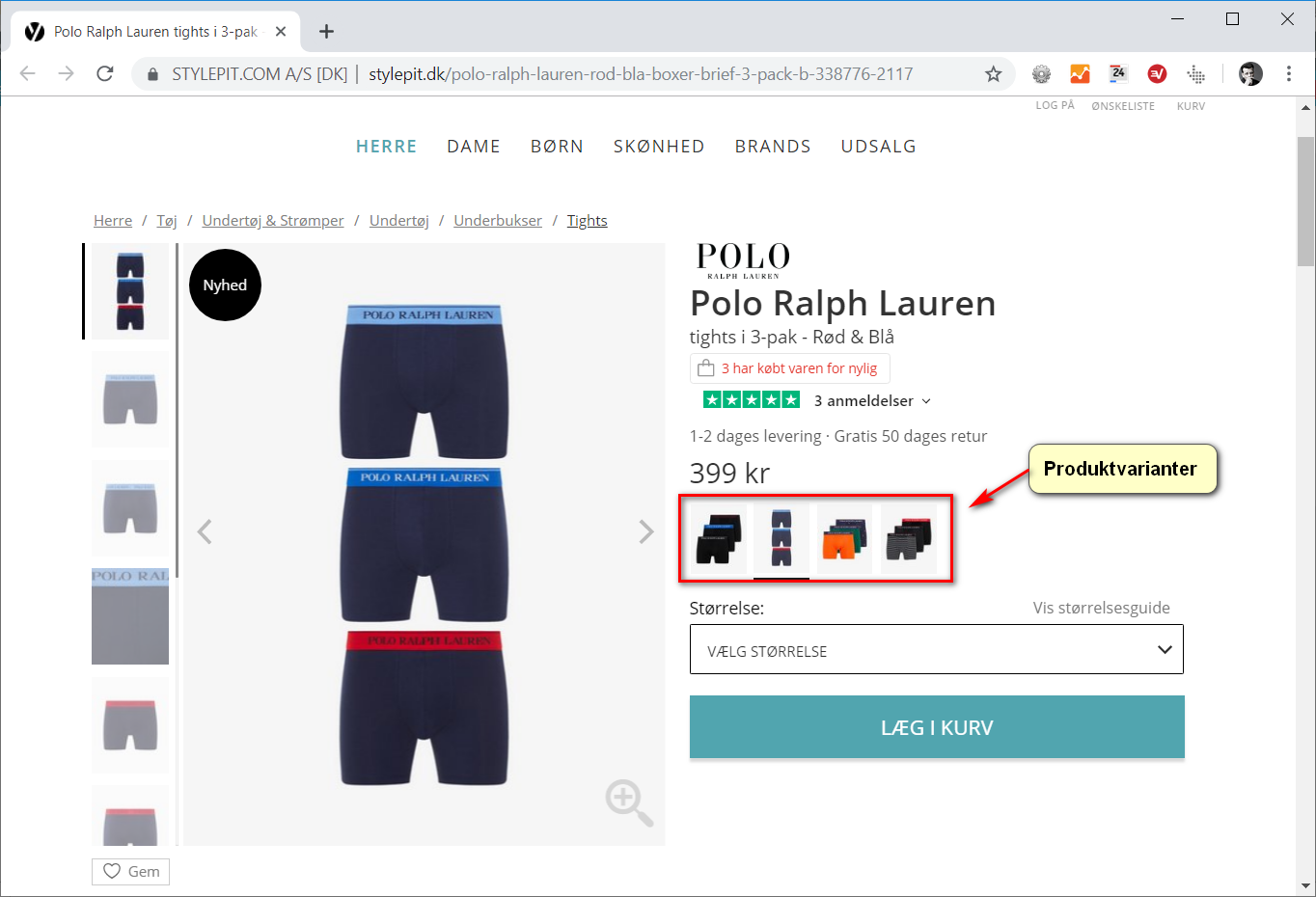 På Stylepit.dk findes mange af deres produkter i flere varianter. Her er det som et eksempel en side med underbukser.