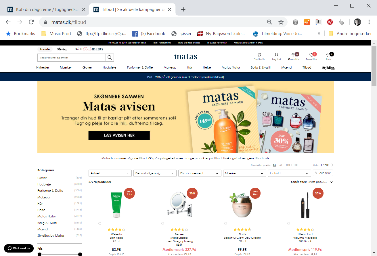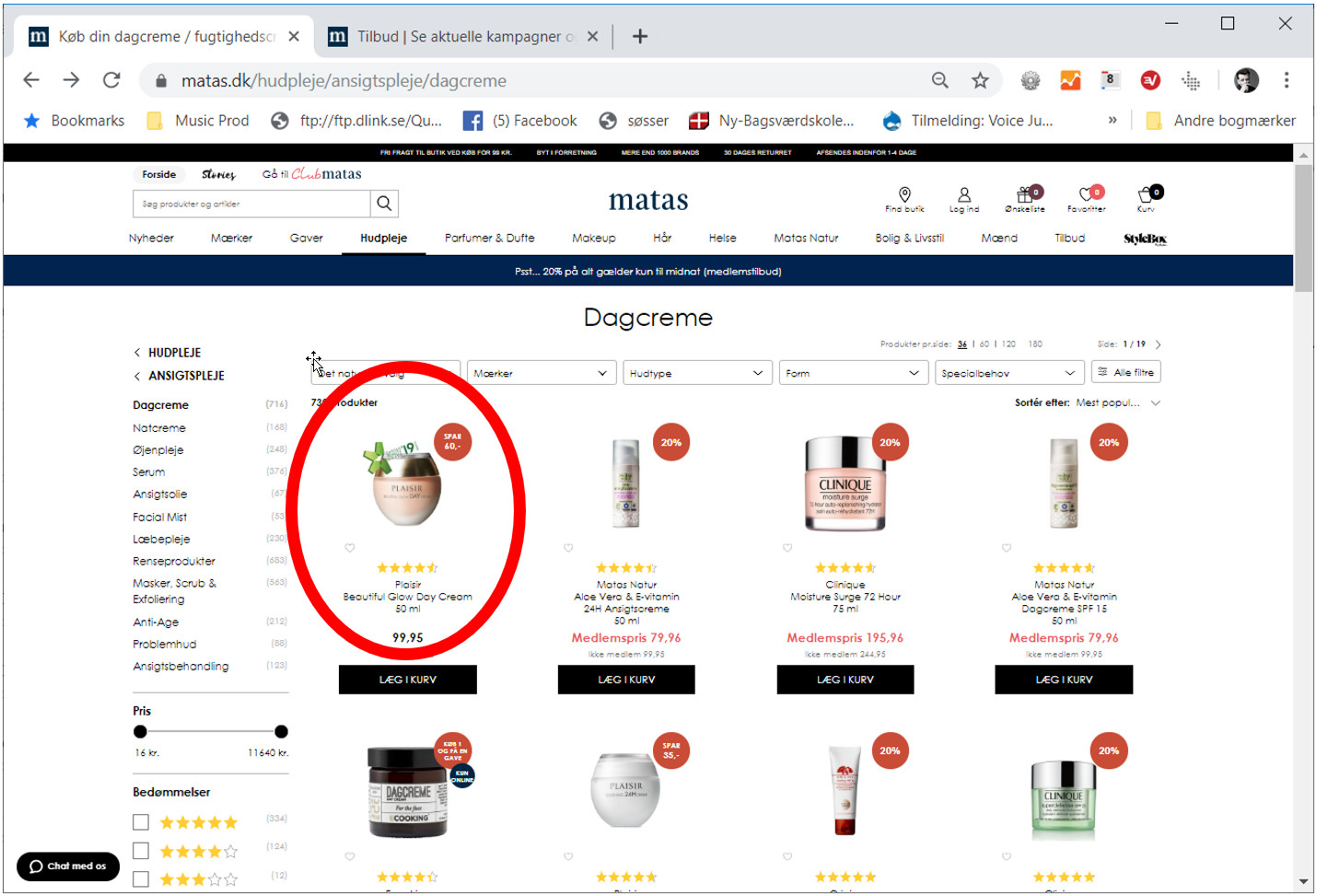 Matas har løst dette problem på en rigtig god og sikker måde. For selvom produkterne findes i to eller flere kategorier, reflekteres det ikke i URL’en til selve produktet. Alle produkter ligger i roden af websitet. For det konkrete produkts vedkommende er URL’en – uanset om man klikker sig ind fra ”dagcreme” eller ”tilbud” kategorien - følgende: