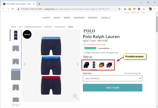 Siden mangler måske også lidt mere produkttekst – men det er en anden historie, og i alle fald den ville sikkert forblive den samme på de forskellige varianter.