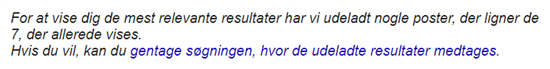 Umiddelbart vises kun et resultat, så man kunne tro, alt var OK. Men det er det ikke helt. Hvis du scroller ned i bunden af søgeresultatet, kan du se denne besked: