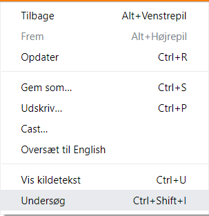 Gå ind på den side, du vil teste, højreklik på siden og vælg ”Undersøg”. Det åbner et vindue hvor du kan undersøge en masse forskellige ting – herunder også hastighed.