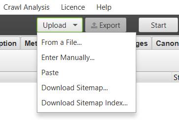 Herefter kan du så vælge enten at uploade din fil med de gamle URL’er, eller blot copy-paste den ind, hvis den ikke er så stor. Herefter trykker du på ”start” for at crawle listen.