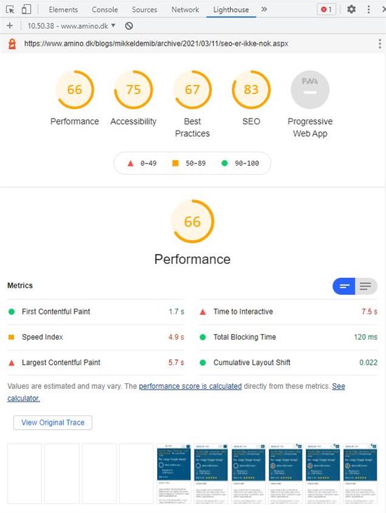I det tilfælde kan du bruge Chrome-browserens indbyggede test-funktion. Den minder meget om det, du får med Google Pagespeed Insight, men kan også bruges på et passwordbeskyttet site.