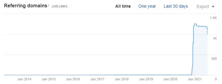 Det er helt tydeligt, at dette domæne har fået en ordentlig røvfuld links på meget kort tid. Det kan godt være Ahrefs.com vurderer det som stærkt. Det gør jeg ikke og tvivler på at Google gør det.