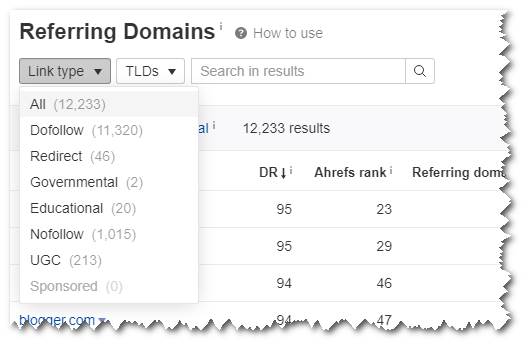 Du kan også filtrere på de forskellige typer af links – og igen er diversitet et godt tegn.