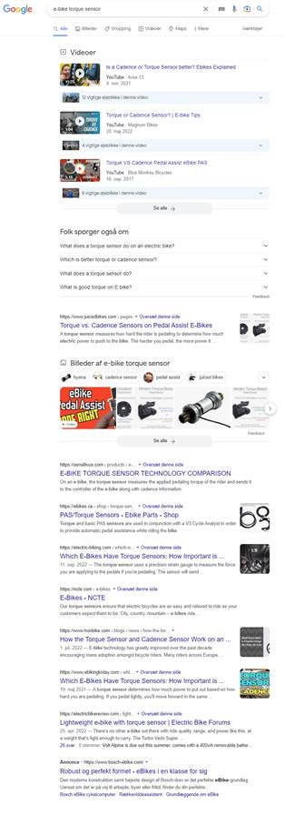 Jeg blev f.eks. overrasket, da jeg for nyligt sad og lavede noget research på et teknisk område, og søgte på ”e-bike torque sensor”. Jeg havde bestemt ikke regnet med, at denne søgning ville vise så mange video-resultater, som den gjorde.