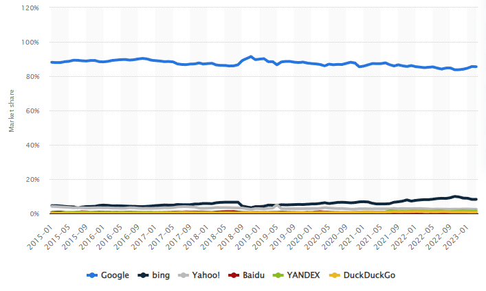 Ref: https://www.statista.com/statistics/216573/worldwide-market-share-of-search-engines/