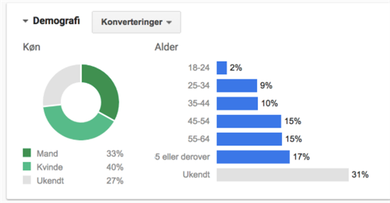 Derudover bruger Google også den data som du udfylder i din Google konto. Mange danskere har i dag en Gmail eller Google konto, og her giver man også sin alder og køn til kende.