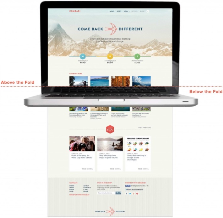 Særligt vigtigt er det at få dine vigtigste og flotteste elementer op over ‘folden’ som er den nederste del af det første skærmbillede, dine besøgende lander på.