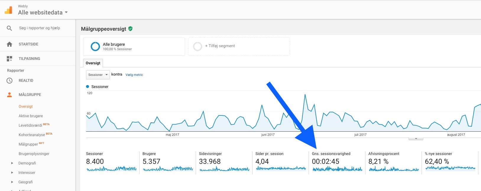 Du kan nemt finde ud af, hvad den gennemsnitlige tid en bruger bruger på din hjemmeside er i Google Analytics.