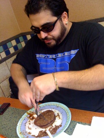 "I did the best I could. Those burgers kicked my ass. I ate 4 lbs worth of beef and then I had to give up. Around the 2.5 lb mark I began using water to swallow the meat. My mouth was no longer producing saliva. If my life depended on it I could probably eat at total of 5-6lbs of beef. Since I knew there was no way I could make it to 15 lbs, I decided to quit and have an ice cream sundae. To all those who supported me, I thank you and I'm sorry I let you down. To those who doubted me, rot in hell, but you were right. It's not possible to eat all that food especially beef. Take care. Happy Halloween! This year my costume is a Giant Pumpkin!"