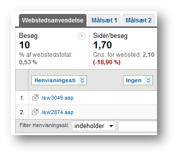 underside på sitet du/dit site er omtalt. For at se præcis hvilken underside, så klikker du blot på domænenavnet i Google Analytics.