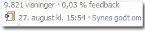 Engage your fans!"Jeg formoder personligt ved almindelig snusfornuft at algoritmen arbejder med nogle procenter. 70 fans der har trykket "skjul" - eller måske bare aldrig siger eller gør noget, er mig personligt uønskede indtil jeg når.. skal vi sige 5.000(?). De mindsker mine muligheder for ægte viral effekt.
