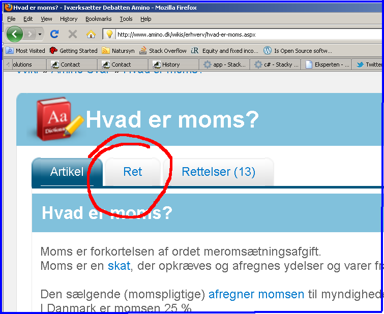 Så er projektet kørende og det første ord vi har lagt ind er "moms". Det der sker, er at første gang ordet "moms" optræder i en debat, så vil det linke til den relevante sider om moms.