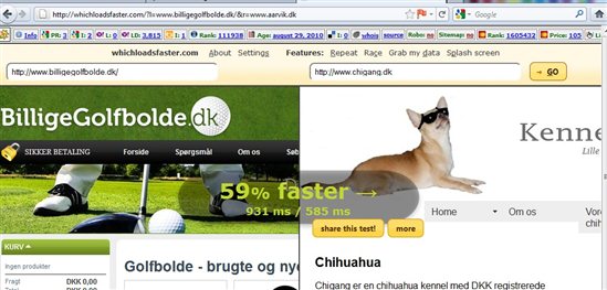 Men det er tydeligt, at webshops er tungere i loadingtiden, end f.eks blogs eller lignende... Så det vil være en blog, som vinder ;D