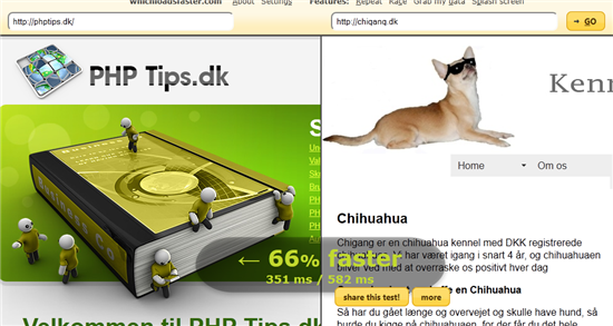 www.chigang.dk vs phptips.dk (Som er min egen custom programmerede, non allowed cached heavy usage php site).
