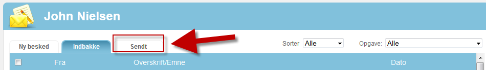 Når du står i indbakken, skal du vælge fanebladet Sendt: