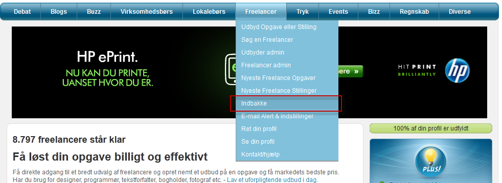 Kør markøren op på Freelancer menupunktet igen, når du er landet på Freelancer siden.