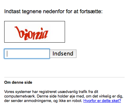 Jeg får rimelig ofte denne besked fra Google når jeg søger, selv når jeg er logget ind. Jeg ved godt jeg er hurtig på tasterne og navigering, men får den lidt for ofte efterhånden (har privat forbindelse)