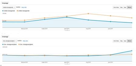 Den nederste graf viser hvordan jeg som modsvar har forsøgt at hæve "time on site". Dette tiltag, som jeg for så vidt fortsat arbejder på, har ikke båret frugt.