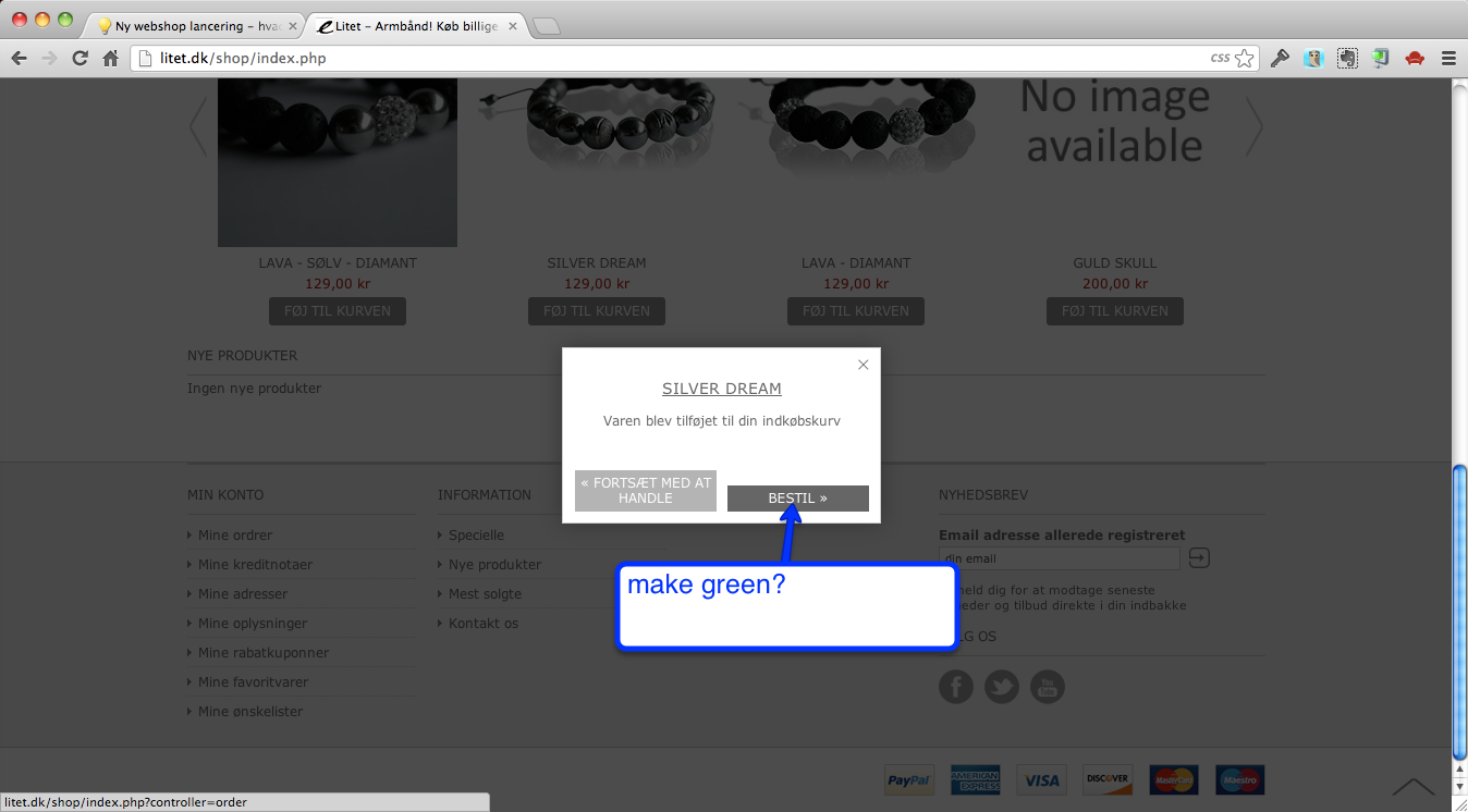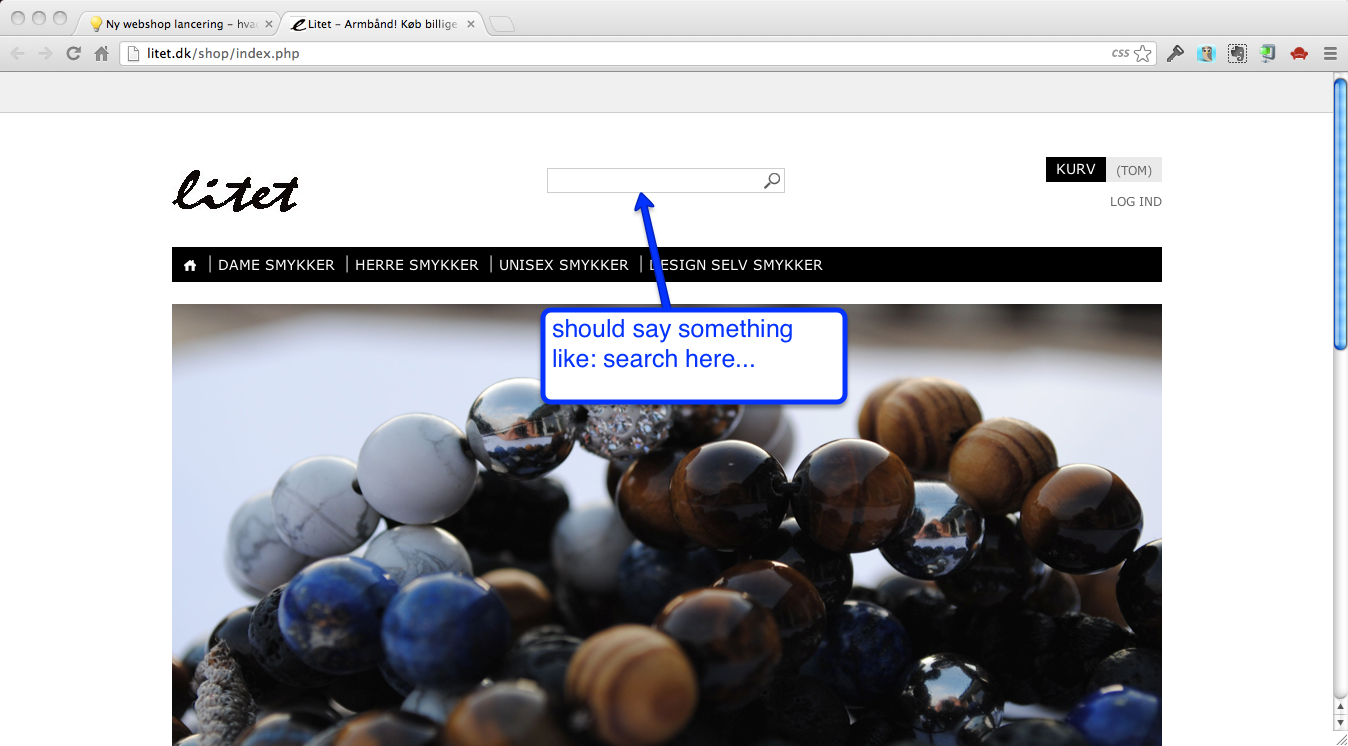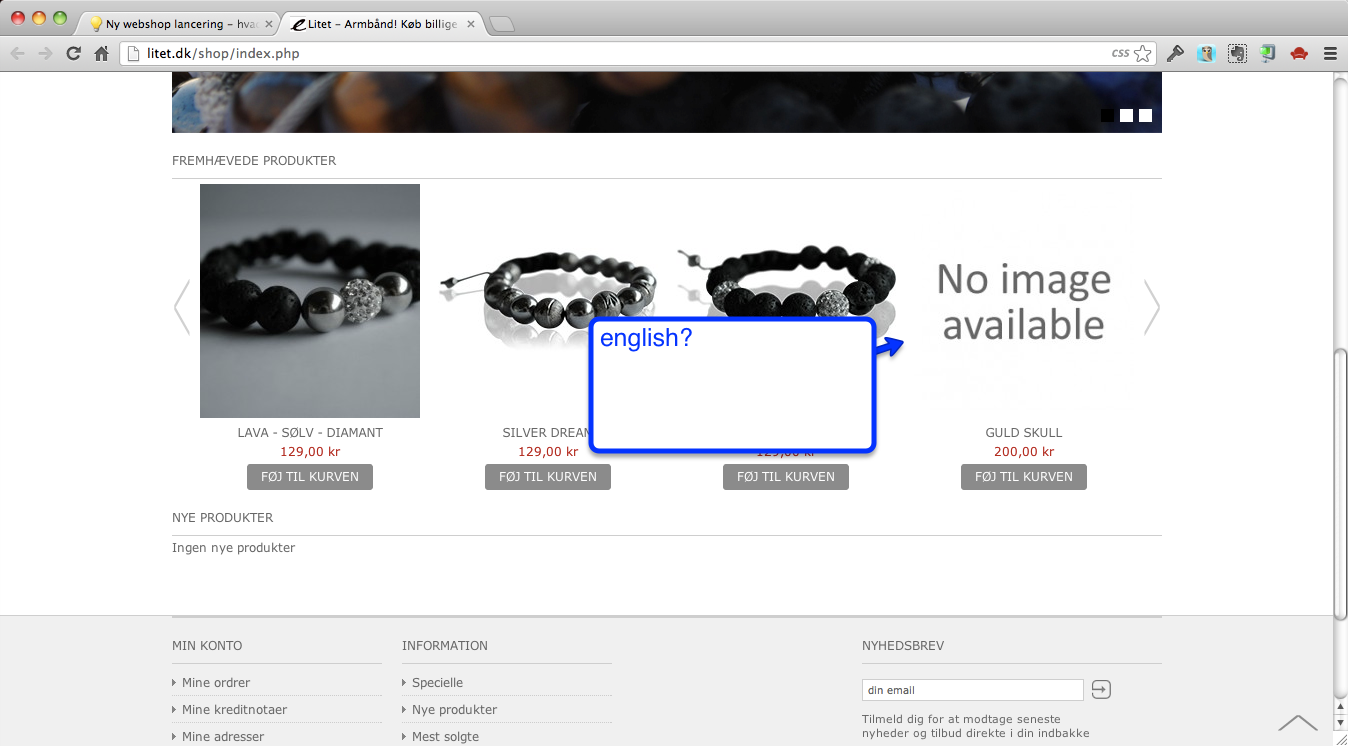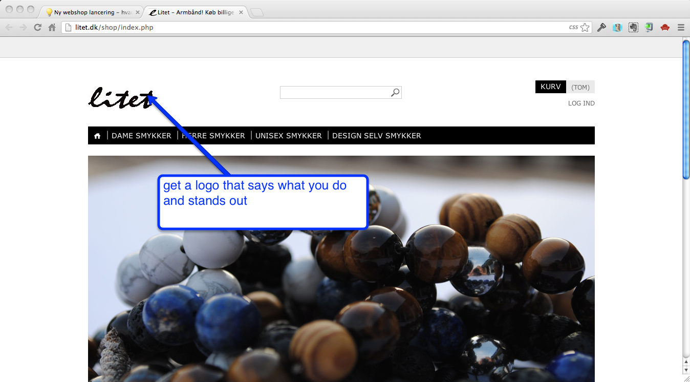 Nydelig side, dog et par mindre ting; - Slideren fylder aaalt for meget! Reducér højden med ca. 25-50% - Få et bedre logo - Flere produkter - Slet kategorier der ikke har produkter fra forsiden |