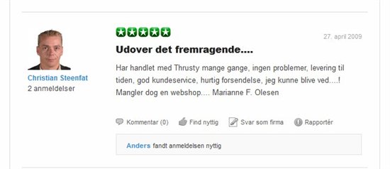 I øvrigt mht. Trustpilot anmeldelserne for det pågældende firma så lugter de langt væk af konstruerede anmeldelser eller vennetjenester. Det er meget sjældent kunder udtrykker sig i de vendinger og på den måde som man ser her, og ydermere er der atypisk underskrevet med firmanavn osv. ved flere af dem, meget usædvanligt. Til gengæld ser alle de negative anmeldelser i mine øjne meget troværdige ud