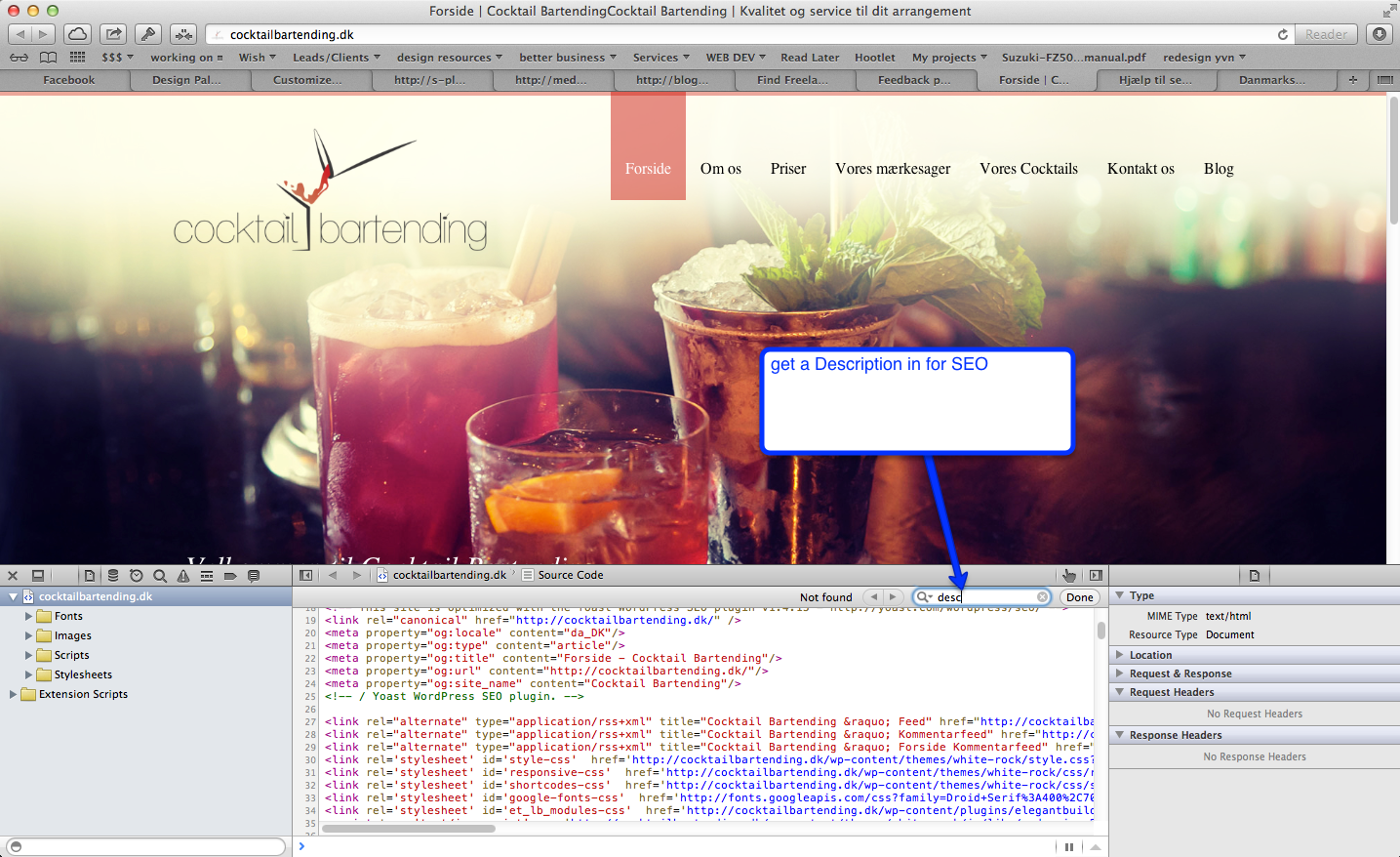 Dog synes jeg at opstillingen af de forskellige cocktails under "Vores cocktails" er noget rodet og uoverskuelig. Der står også "Archives" i titlen på den side, det ved jeg ikke om er meningen? Det giver i hvert fald ikke meget mening, når resten er på dansk.