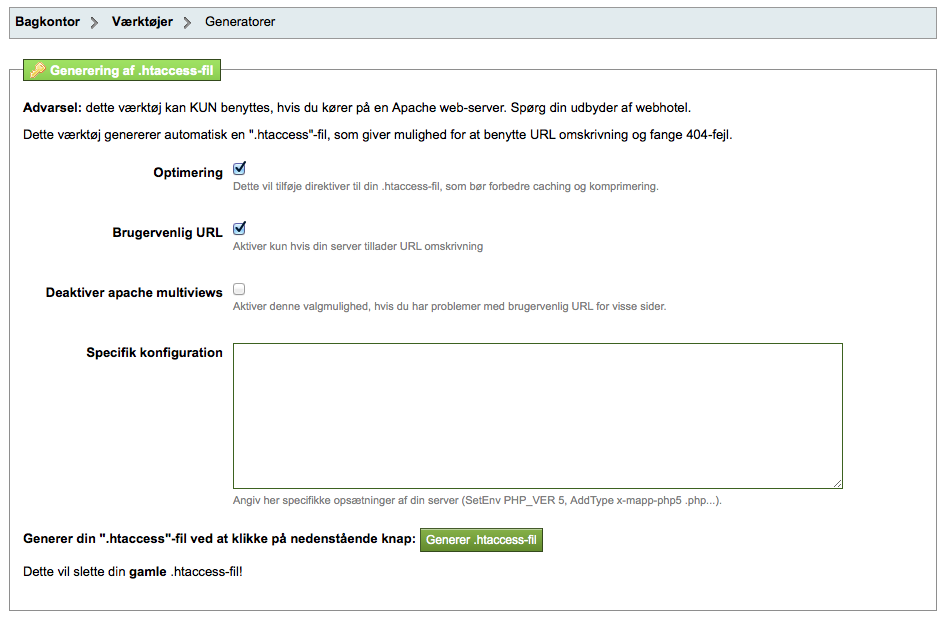 Hej Amino. Min webshop melder fejl i højre side, så snart jeg er logget ind i PrestaShop. Der er et rødt udråbstegn ved URL omskrivning. Trykker jeg på det, kommer jeg videre til bagkontor --> Værktøj --> Generatorer. Her har jeg mulighed for at generer .htaccess mm. Er der nogen der kan forklare mig hvordan jeg fikser fejlmeddelelse, uden webshoppen går helt ned? Tak på forhånd :-) |