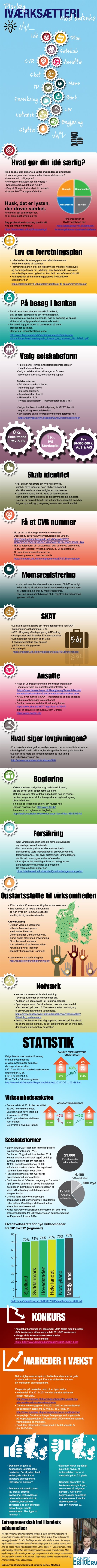 Hej, Her er den: Startmanualen til iværksættere opsat som overskuelig Infografik. Med tidens vilde iværksætterboom i tankerne har vi hos Flere Kunder (et mindre online marketing bureau) udarbejdet en startmanual til nye iværksættere. Og vi ved, hvad vi snakker om, for vi var der selv for blot få år siden. Der findes ikke en sådan manual, og den er savnet hos nye iværksættere. Vi har fået feedback fra Dansk Erhverv i udarbejdelsesprocessen. Dette giver startmanualen bl.a. svar på:
